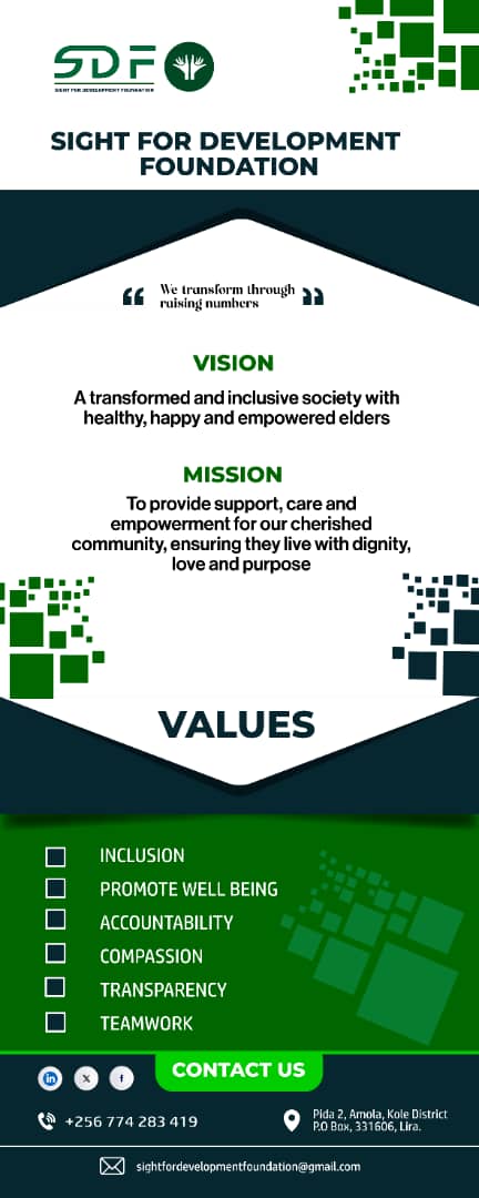 Sight For Development Foundation (SDF) is a non-profit organisation that was established in Uganda to advocate for the well-being of elders and engage the elderly population in economic and social development for them to be self-sustaining and age with dignity.